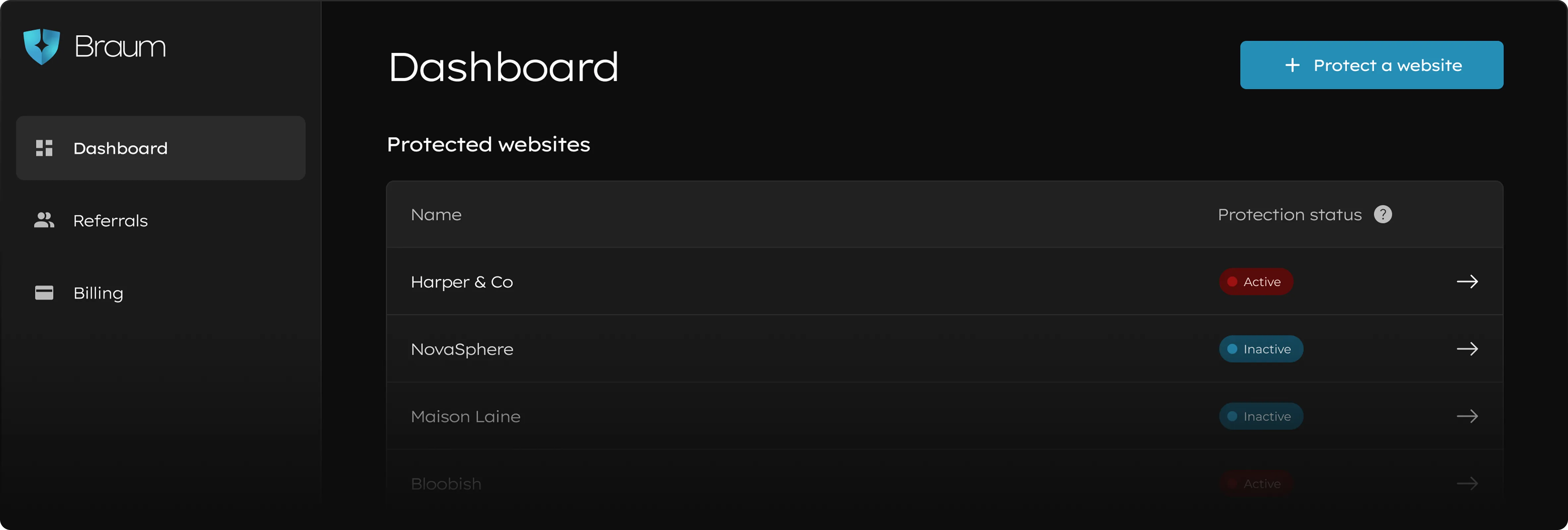 Braum doesn’t just protect your website — it protects your peace of mind.